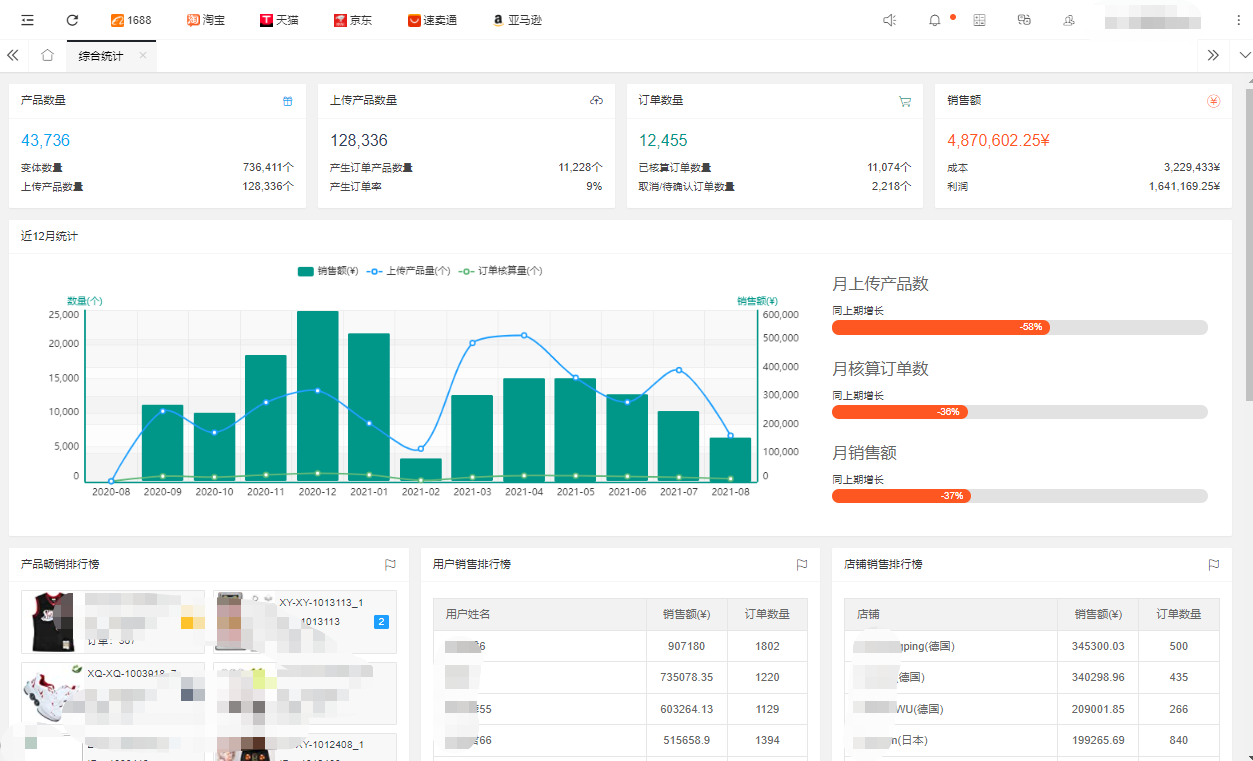 訂單統(tǒng)計(jì)、銷售額統(tǒng)計(jì)、訂單趨勢(shì)分析、暢銷品排行榜等